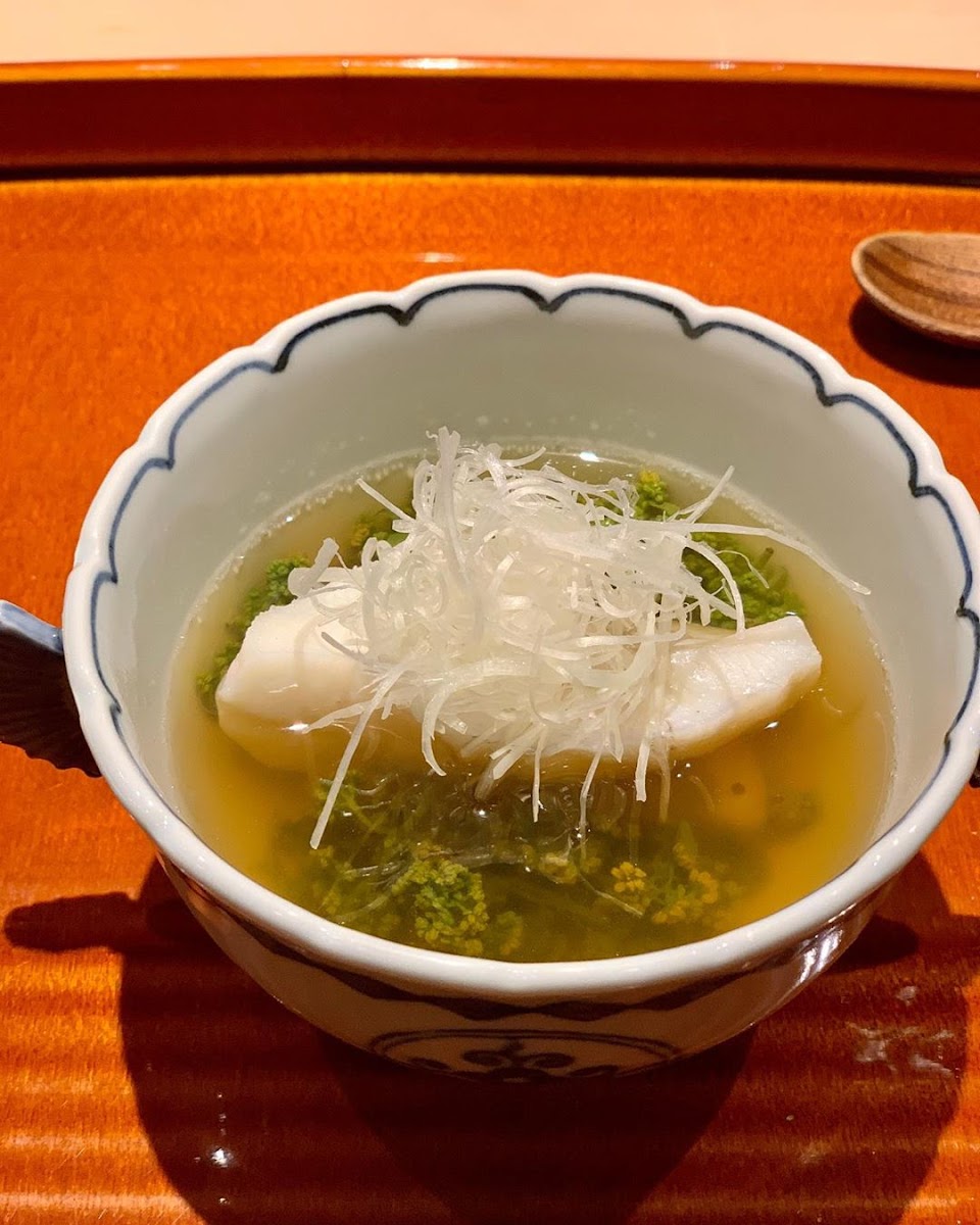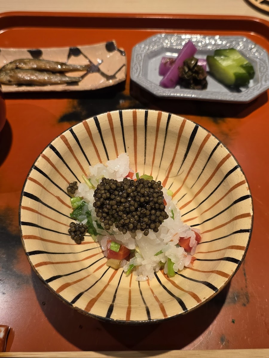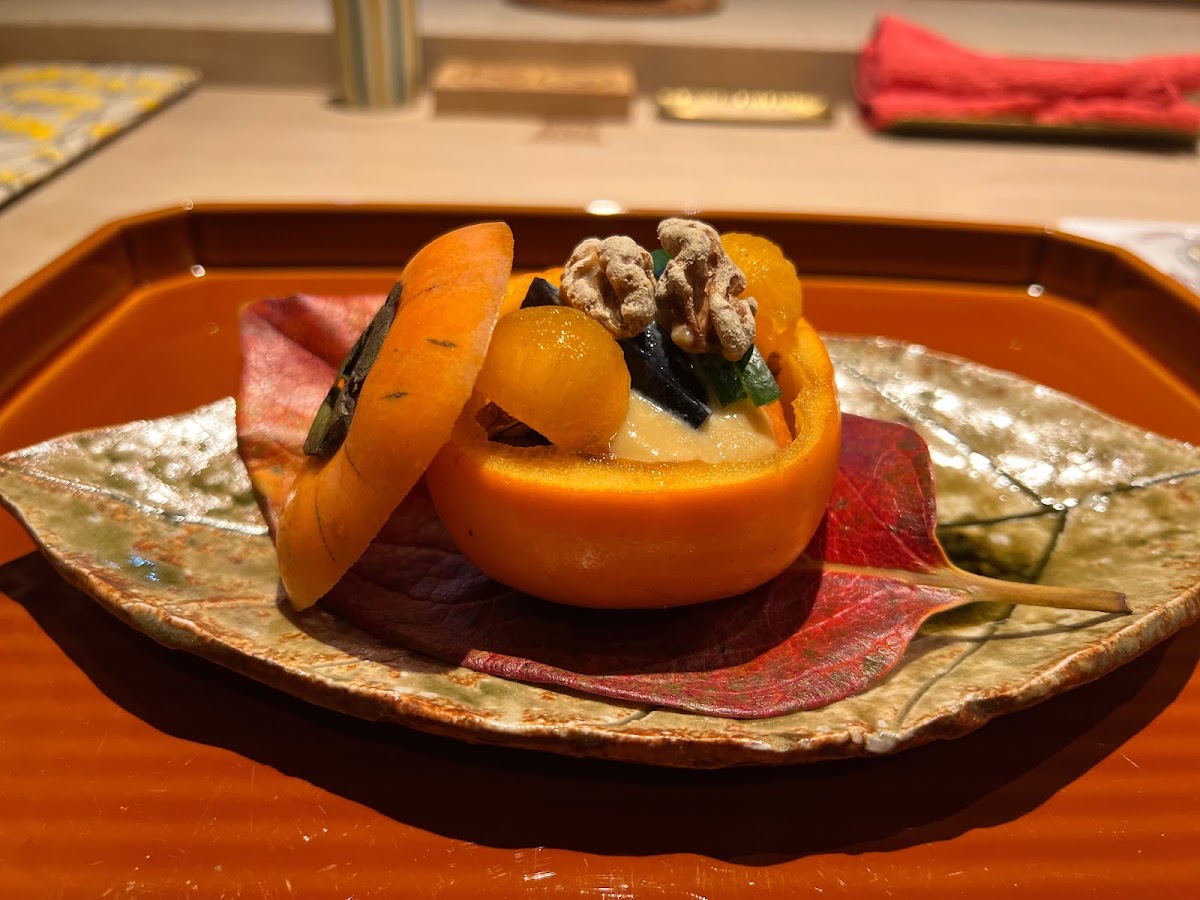 One of the restaurant’s standout offerings is its Conger Eel Soup, a dish that exemplifies the delicacy and depth of flavor that Kaiseki cuisine is known for. The soup is both savory and refreshing, highlighting the rich umami of the conger eel. Another signature dish that brings the unique flavors of Kyoto to the table is 柿とキャビア (Persimmon and Caviar), which is a delightful fusion of textures and tastes-smooth, sweet persimmon paired with the salty burst of caviar. For seafood lovers, the カニのコース (Crab Course) is a must-try, featuring a selection of crab prepared with exquisite precision, allowing the natural flavors of the seafood to shine through.
